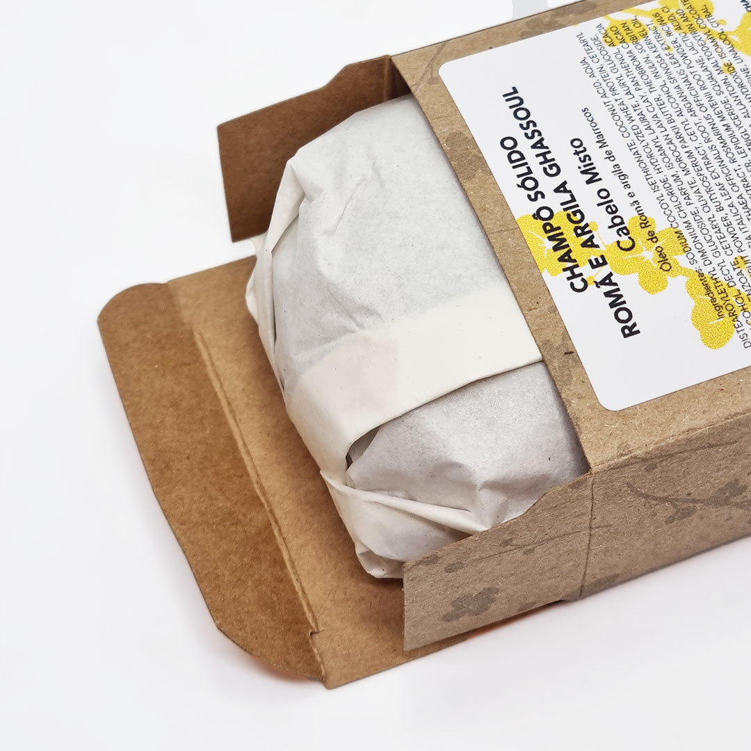 Champô sólido para um cabelo misto com Óleo de Romã e argila de Marrocos.