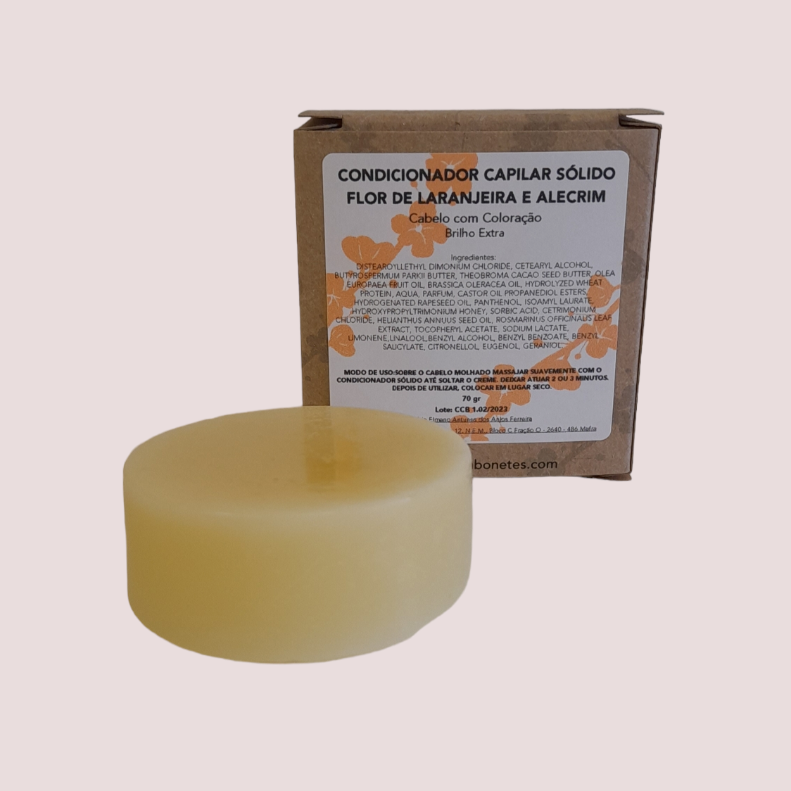 Modo de Uso: Após lavar o cabelo, esfregue o condicionador sólido diretamente nos fios húmidos ou entre as mãos para formar um creme suave. Aplique do meio até às pontas, deixando agir por alguns minutos. Enxágue bem com água morna.