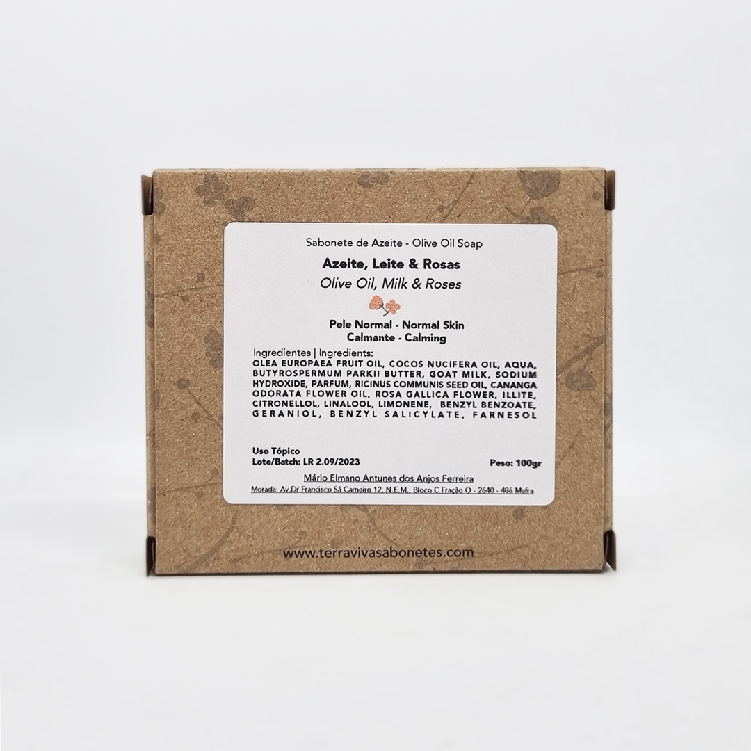 OLEA EUROPAEA FRUIT OIL, COCOS NUCIFERA OIL, AQUA, BUTYROSPERMUM PARKII BUTTER, GOAT MILK, SODIUM HYDROXIDE, PARFUM, RICINUS COMMUNIS SEED OIL, CANANGA ODORATA FLOWER OIL, ROSA GALLICA FLOWER, ILLITE, CITRONELLOL, LINALOOL, LIMONENE, BUTYPHENYL METHYLPROPIONAL, BENZYL BENZOATE, GERANIOL, BENZYL SALICYLATE, FARNESOL