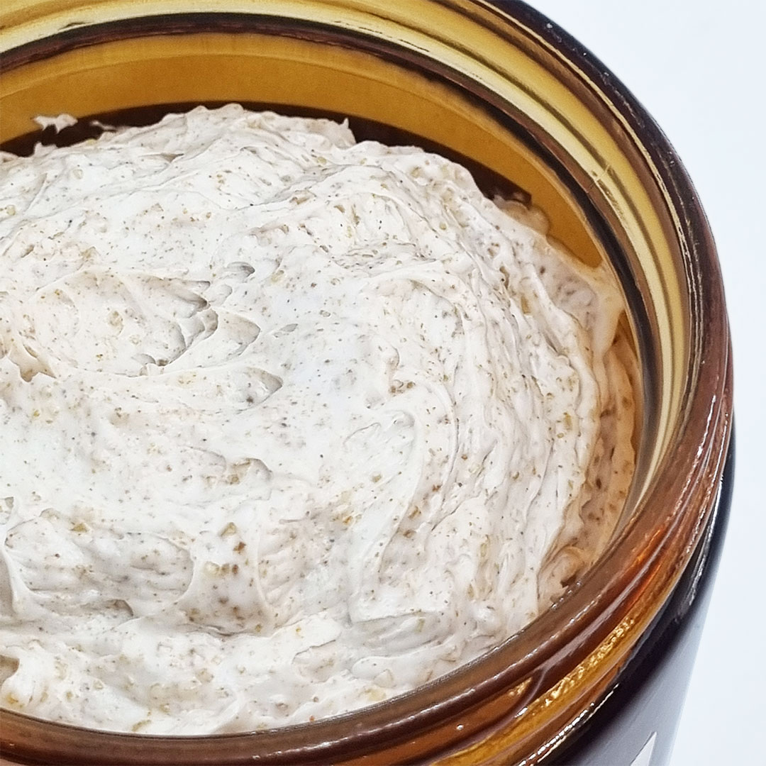 Com ingredientes como óleo de coco, manteiga de cacau, manteiga de karité, manteiga de manga, óleo de amêndoas doces, Vitamina E e açucar de coco.